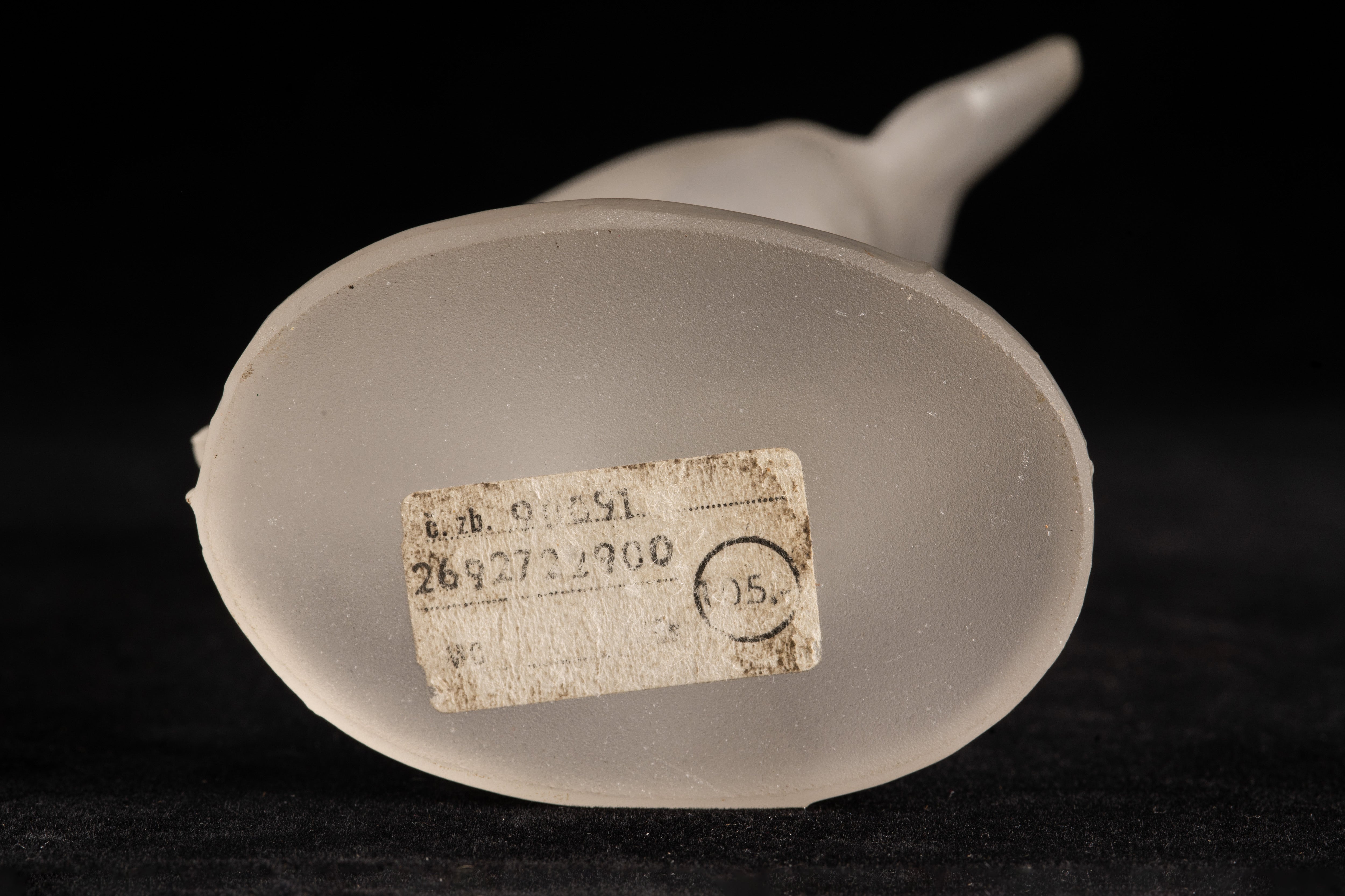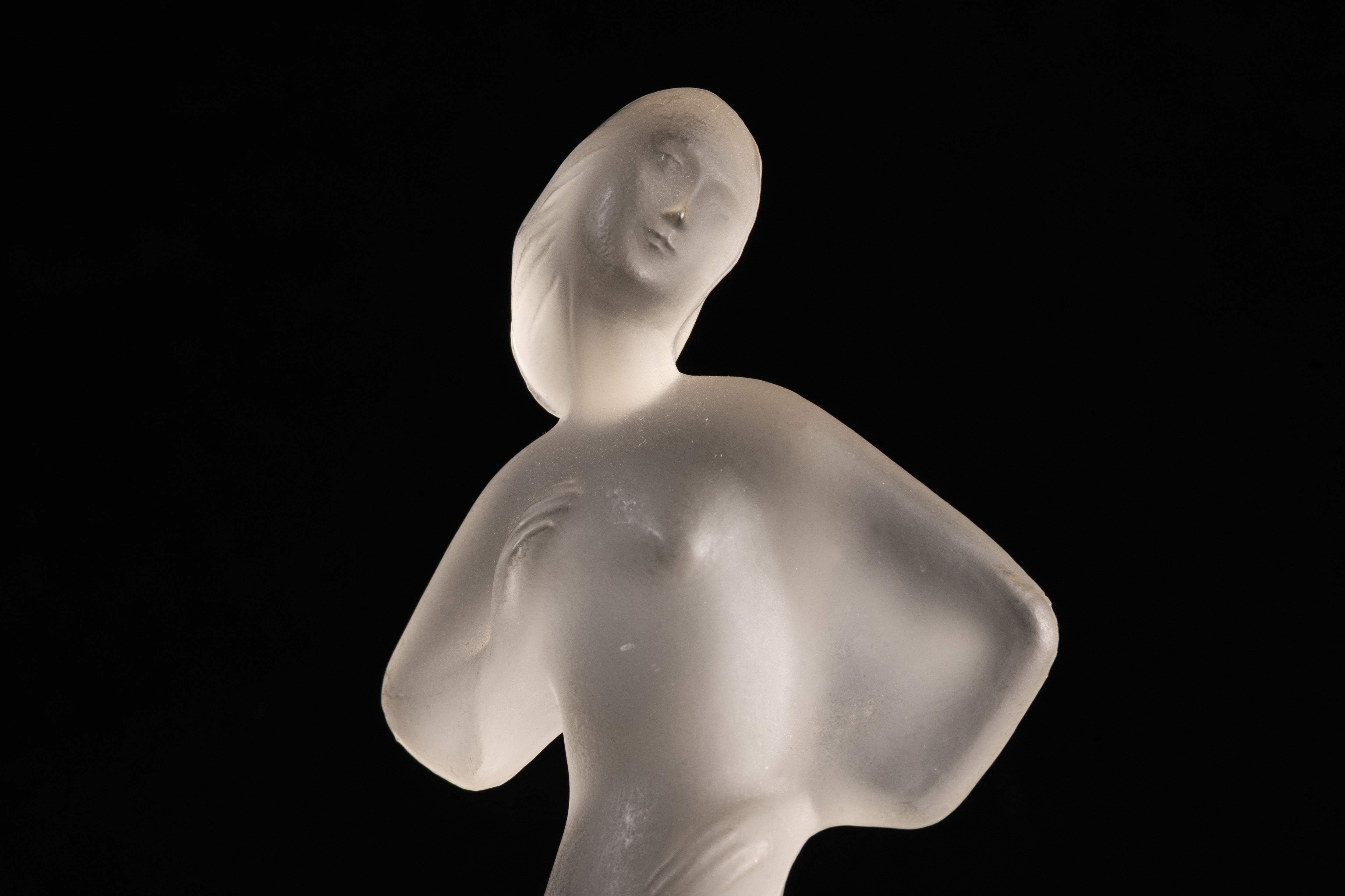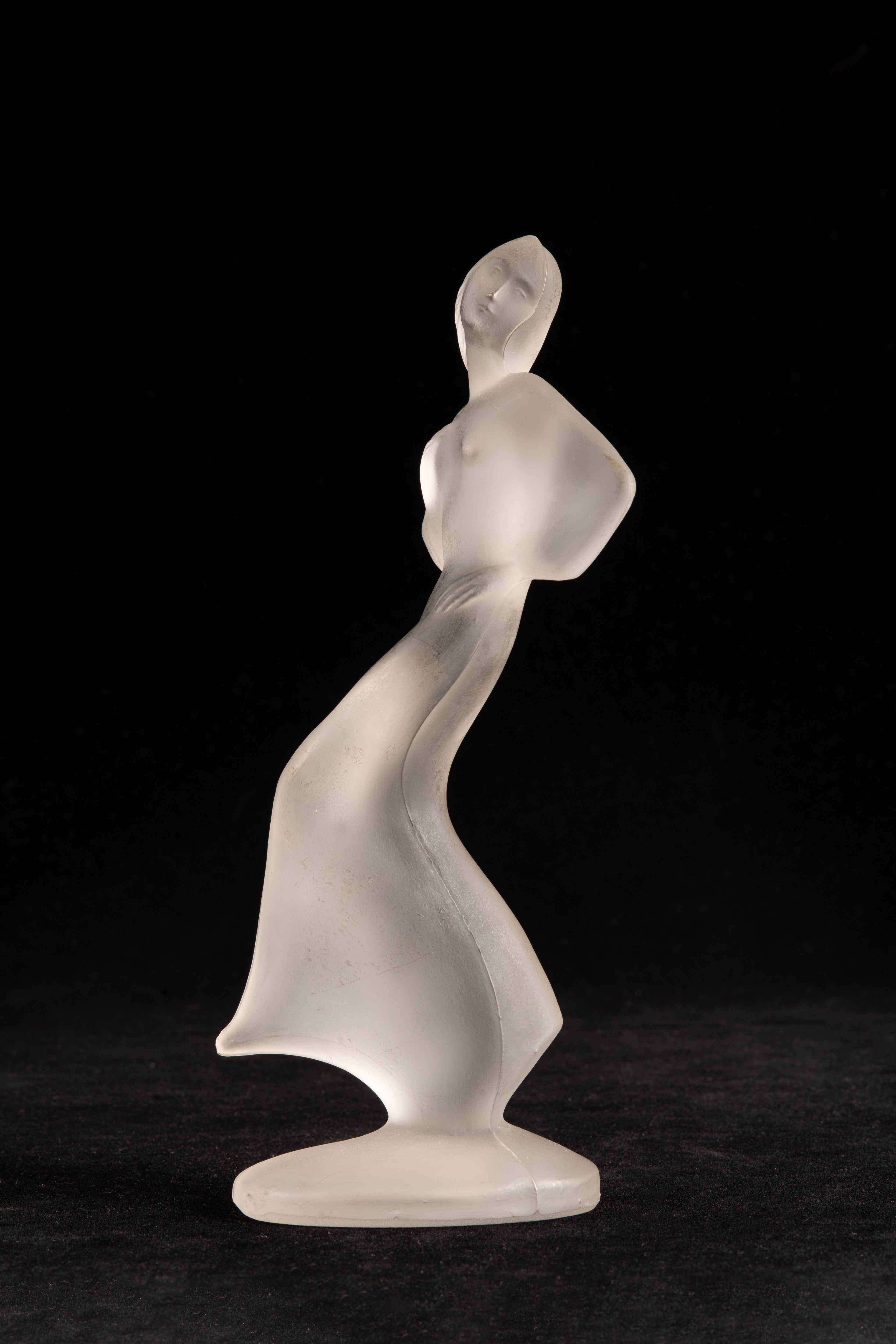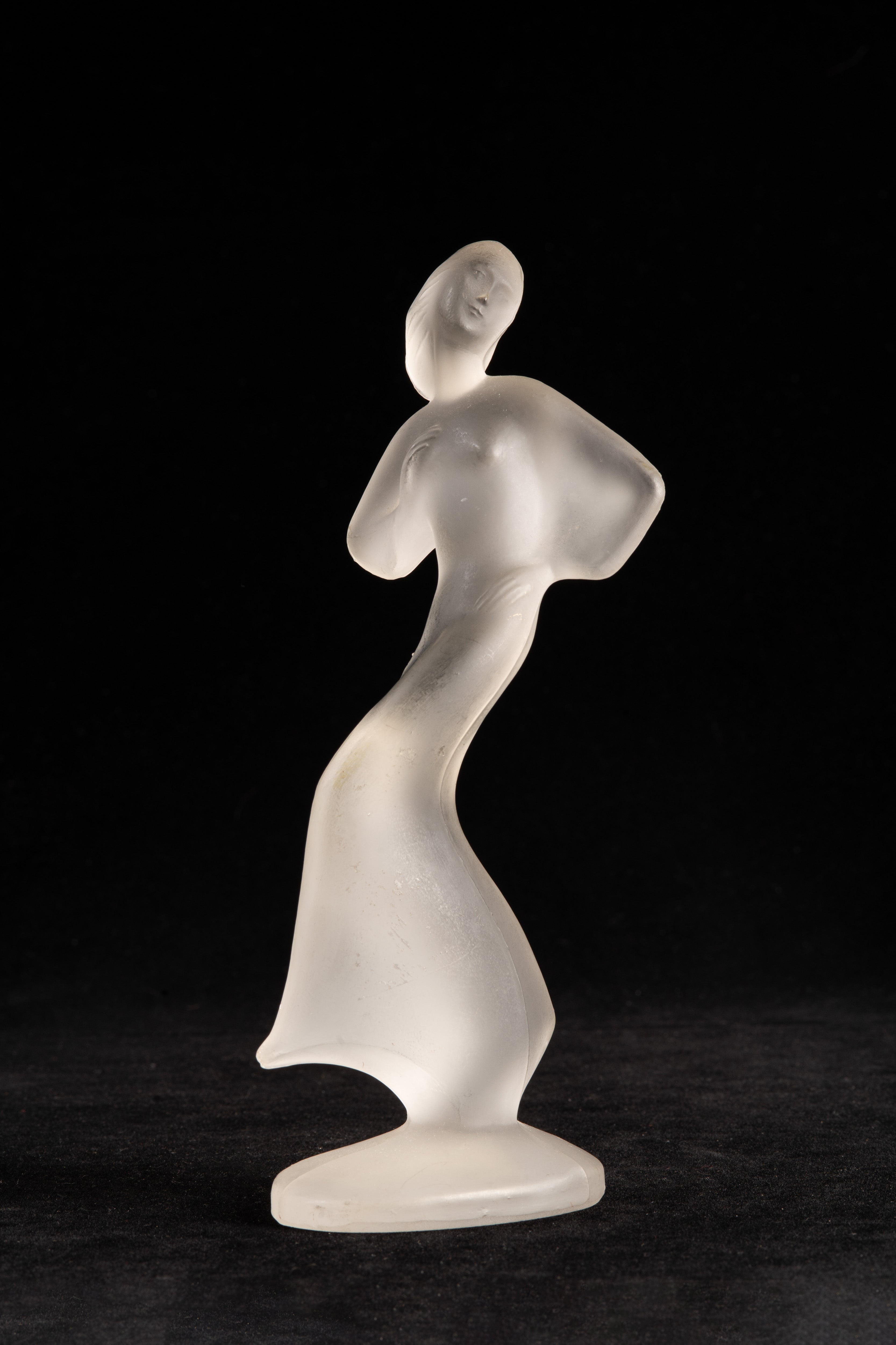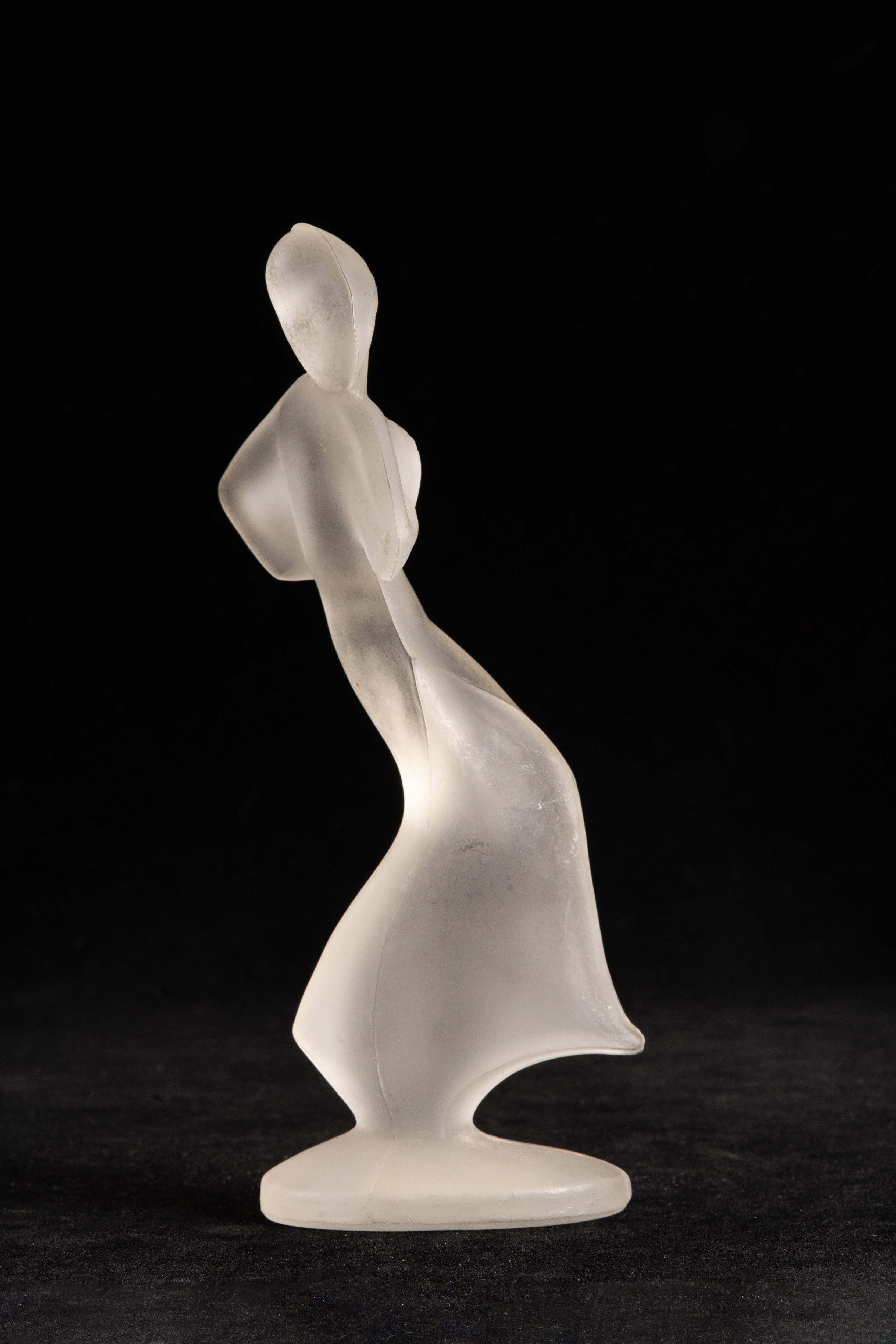 由 Ida Schwetz-Lehmann 所設計的玻璃雕塑,採用霧面磨砂的技術,讓玻璃呈現出一種如冰塊般的半透明質地。人物的細節簡化,但卻不失神韻與動態,尤其是這件女舞者,巧妙的運用了模具的範線,讓柔和的線條多了一點俐落的感覺,呈現 20 世紀初期玻璃工藝最精華的一面。