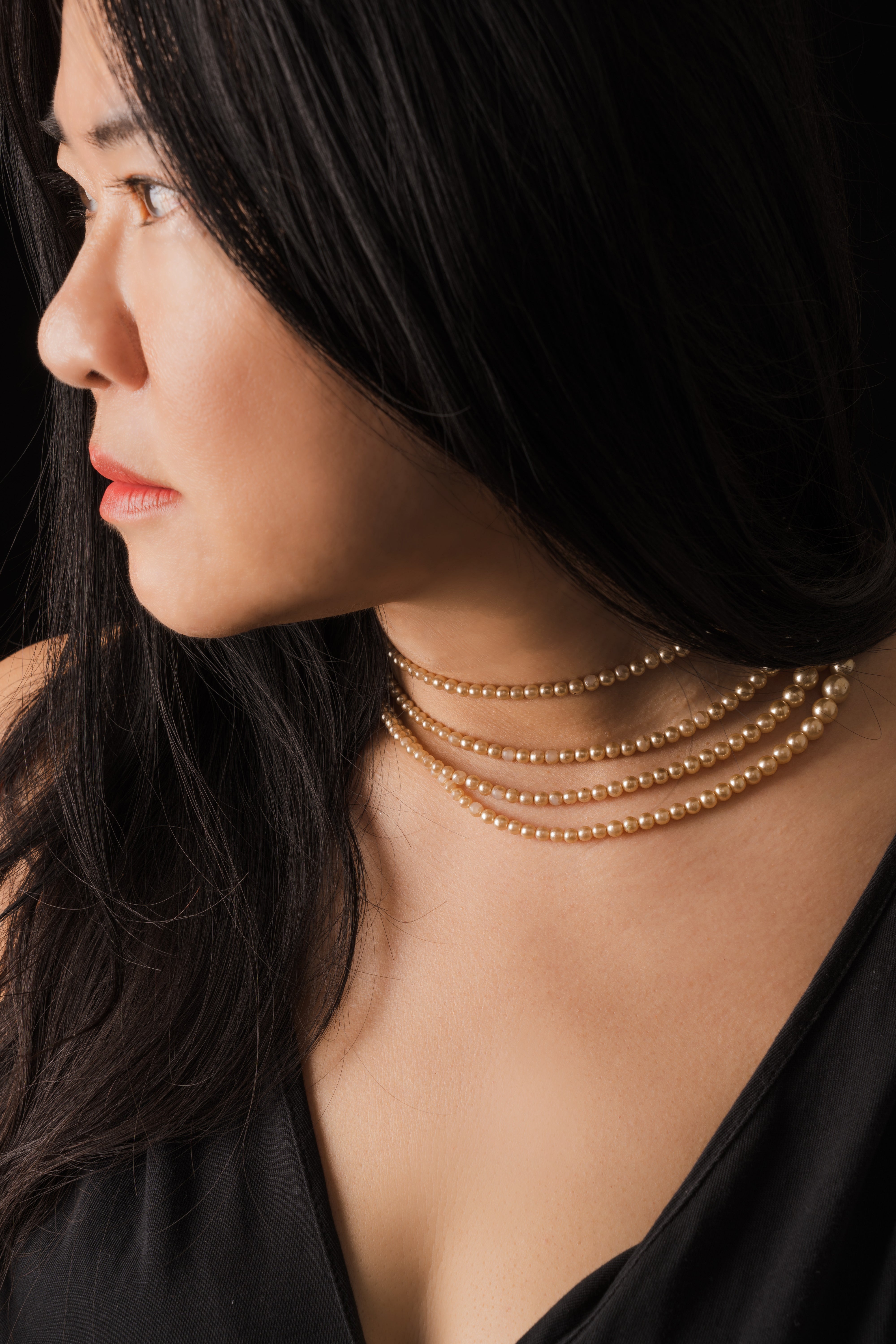 這款來自1950年代美國、風格致敬維多利亞時期的暮光之約項鍊。珍珠色澤略帶金粉感,柔和中又帶點復古的微光。串珠由小至大,層層遞進,貼合頸間的弧度,讓整體線條優雅又修長,低調又奢華。而最迷人的,是中央那枚方形銀扣,幾何交錯的立體設計,鑲滿細緻閃爍的鋯石,中央一顆長形切割,像是凝住了暮色的星光。戴上它,讓自己成為最動人的模樣。